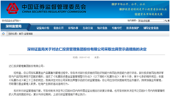 承诺最低收益私募被开罚单 知名机构达仁投资收警示函