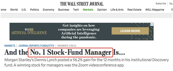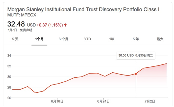 近期,在华尔街日报最新举行的二季度“赢者圈”基金评选(Winners' Circle contest)中,大摩旗下的“摩根士丹利机构探索基金”(Morgan Stanley Institutional Discovery Portfolio)基金以近60%的收益拔得头筹