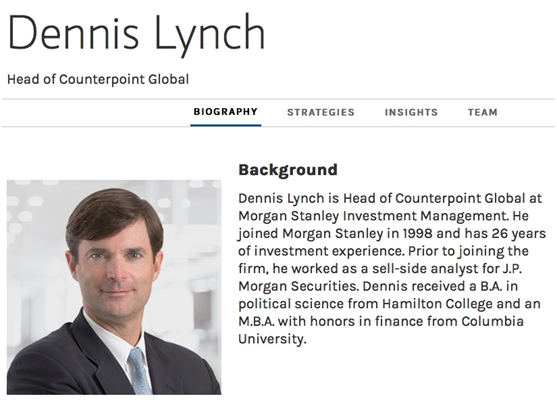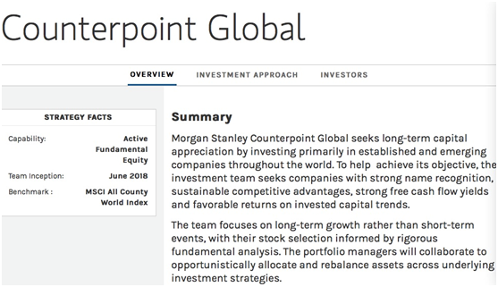 目前,该基金经理担任摩根士丹利Counterpoint Global部门的主管。该部门专注于对老牌公司及新兴公司的长期投资。