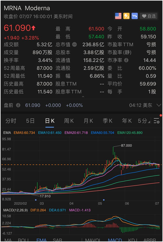 其中,药企Moderna因新冠药物研制进程顺利近期大涨。尽管近期Moderna因疫苗Ⅲ期实验被传延期而股价大跌,其今年以来的涨幅依然十分可观。截至当地时间7月7日收盘,今年以来,该公司已经上涨了212%。