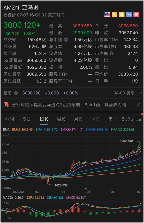 而他投资的亚马逊近期也创下股价新高,突破3000美金大关。截至当地时间7月7日收盘,今年以来,亚马逊已经涨超60%。