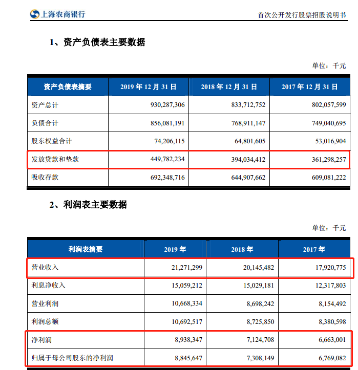 上海农商行招股说明书披露了过去三年的经营情况。