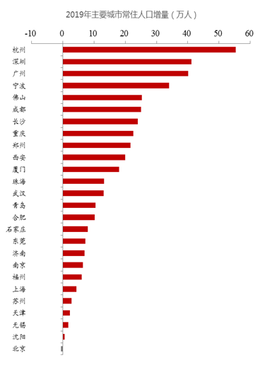 2019年浙江和广东人口净流入规模就达到了84.1万和82.6万,在全国各省市中遥遥领先。根据我们计算,70%以上的人口净迁入量都流向了浙江和广东两省,而前两年这个比例都只有60%左右。与其说人口流向了东部和南方省份,不如说是更加集聚地流向了广东和浙江两省,“二八”现象愈发明显。以2019年人口净流入第一的浙江为例,杭州人口净迁入49.35万人,宁波人口净迁入30.07万人,这两个城市净流入人口占省内各地市净迁入总量的90%以上。说明即便人口净流入最多的省份,除了杭州和宁波这两个大城市外,其他城市基本上“抢”不到人。人口净流入第二的广东情况也类似,大部分的人口都流向了深圳、广州和佛山,而其他大部分城市甚至还在净流出。反过来看,即便是全国人口过去三年净流出最多的人口大省山东,下辖的济南、青岛、烟台和威海四大城市的人口一直在净流入。说明山东作为全国经济体量第三的大省,尽管人口净流出规模第一,但经济发展和人口集聚亮点城市还是比较多的。先相比之下,中西部的有些人口净流出的省份就只呈现“一枝独秀”了,如2019年江西除了南昌和陕西除了西安人口是净流入的,其他省内城市人口几乎都是净流出。此外,山西、河南、湖北、甘肃等省份,基本上都只有1-2个城市人口在净流入,其余城市人口均在净流出。因此,抛开行政区划概念,总体来看,一、二线城市人口呈现净流入,三四五线城市人口则呈现净流出,中国已经步入城镇化的后期,大城市化则方兴未艾。进一步分析,发现新一线城市如成都、杭州、武汉、南京、合肥、佛山等人口流入规模更大,而一线城市中北京和上海早就设置了人口规模的控制闸门,故人口规模很难较快扩张。从2015年开始,我国的流动人口数量逐年减少,这主要是由于当前人口结构已经类似于日本的90年代,即老龄化水平大幅提高,这意味着中国城市化进程会不断放缓。那么,在城市化进程放缓的背景下,有限的流动人口为何不是相对均匀地流向一二三线城市,而是集中涌向少数几个大城市呢?那是因为制造业规模化经营的要求。根据世界银行的案例归纳研究得出的结论,经济密度增加一倍,生产率提高6%,而与中心城市的距离扩大一倍,利润就下降6%。当前中国经济增速不断放缓,投资回报率持续下降,这就要求劳动力、资本、技术和土地这些生产要素进一步集聚,才能节省成本,同时提高劳动生产率。因此,未来一线和新一线的人口集中度还将继续提升,集中度或许会超乎大家想象。