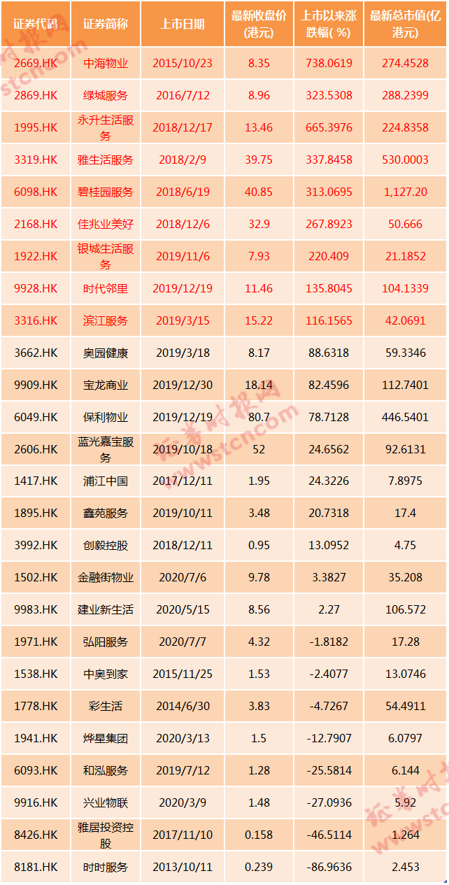 港股物管股上市以来表现: