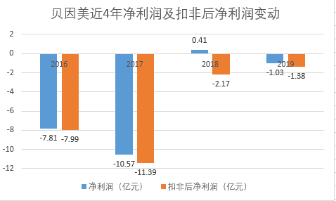 2019年,刚刚“摘帽”的贝因美仍旧身陷亏损泥潭,扣非净利润为-1.38亿,这已经是贝因美连续第四年扣非净利润为负。