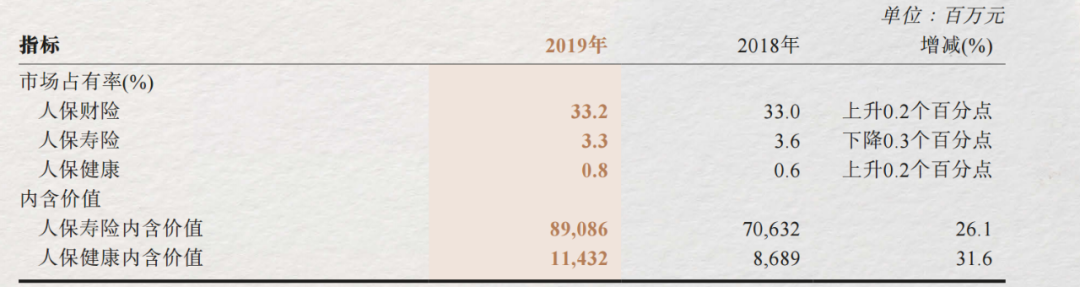 “3411 工程”的实施也卓有成效,人保集团的各项业务也在稳健发展并合理调整。2019年,人保财险市场占有率至33.2%,同比增长0.2个百分点,车险业务与非车险业务占比为6:4。寿险业务发力期缴,2019年实现期缴首年规模保费198.48亿元,期缴(含续期)占比同比提升4.6个百分点,达到62.4%。健康险业务力求做强健康管理。