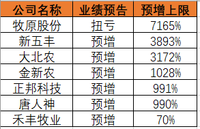 根据已经公布的业绩预告来看,“养猪一哥”牧原股份以71倍高增长仅次于兄弟科技。