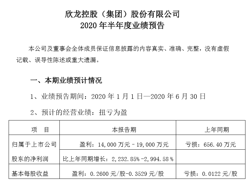 7月11日,无纺布供应商的欣龙控股发布预告称,2020年上半年业绩扭亏为盈,报告期内预计盈利1.4亿元-1.9亿元,较上年同期大幅增长2232.85%-2994.58%。