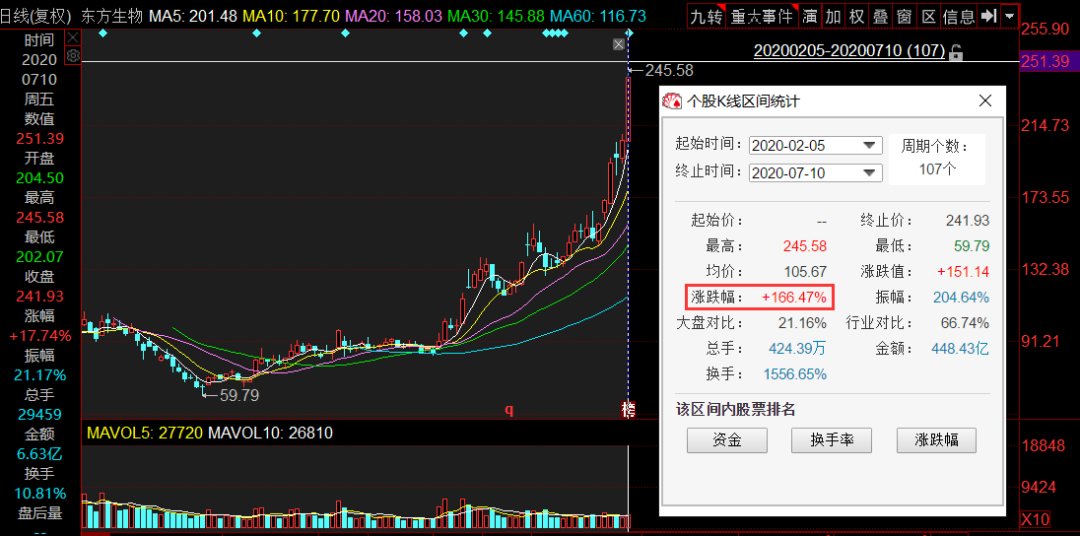 7月10日盘中,东方生物股价触及245.58元/股的历史新高,今年以来,东方生物股价累计上涨166.47%。