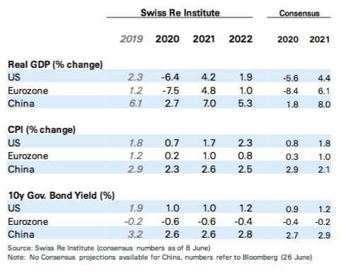 sigma报告预计2020年全球国内生产总值(GDP)将下降约4%,降幅是全球金融危机时期(-1.8%)的两倍,预计全球30个最大经济体中的绝大多数将陷入衰退。