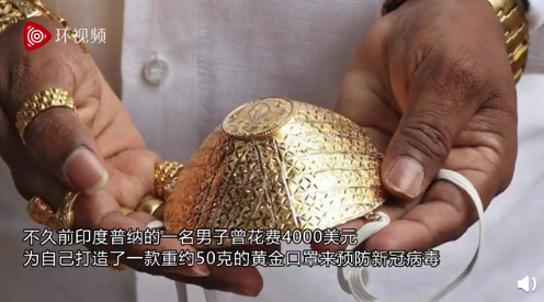 此前,印度普纳的一名男子曾花费4000美元为自己打造了一款重约50克的黄金口罩来预防新冠病毒。