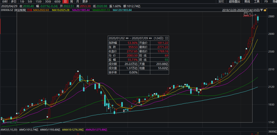 而三大指数表现看,一度疯涨的创业板指数也出现了明显熄火的态势。