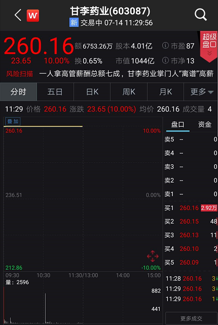 同时,另一只新股甘李药业连续12日涨停,股价达到260元,中一签盈利接近20万元。甘李药业发行价63.32元/股。