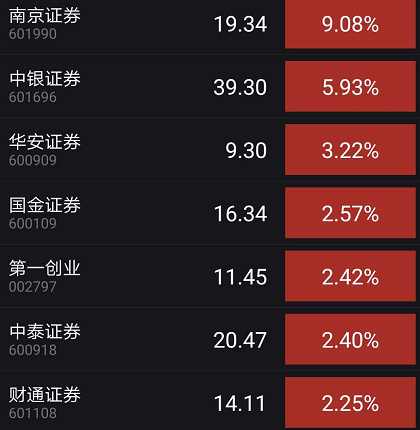临近午盘,券商股再次出现发动迹象。当天上午,越秀金控、南京证券一度封上涨停,券商板块发动也牵引大盘股跌幅收窄。
