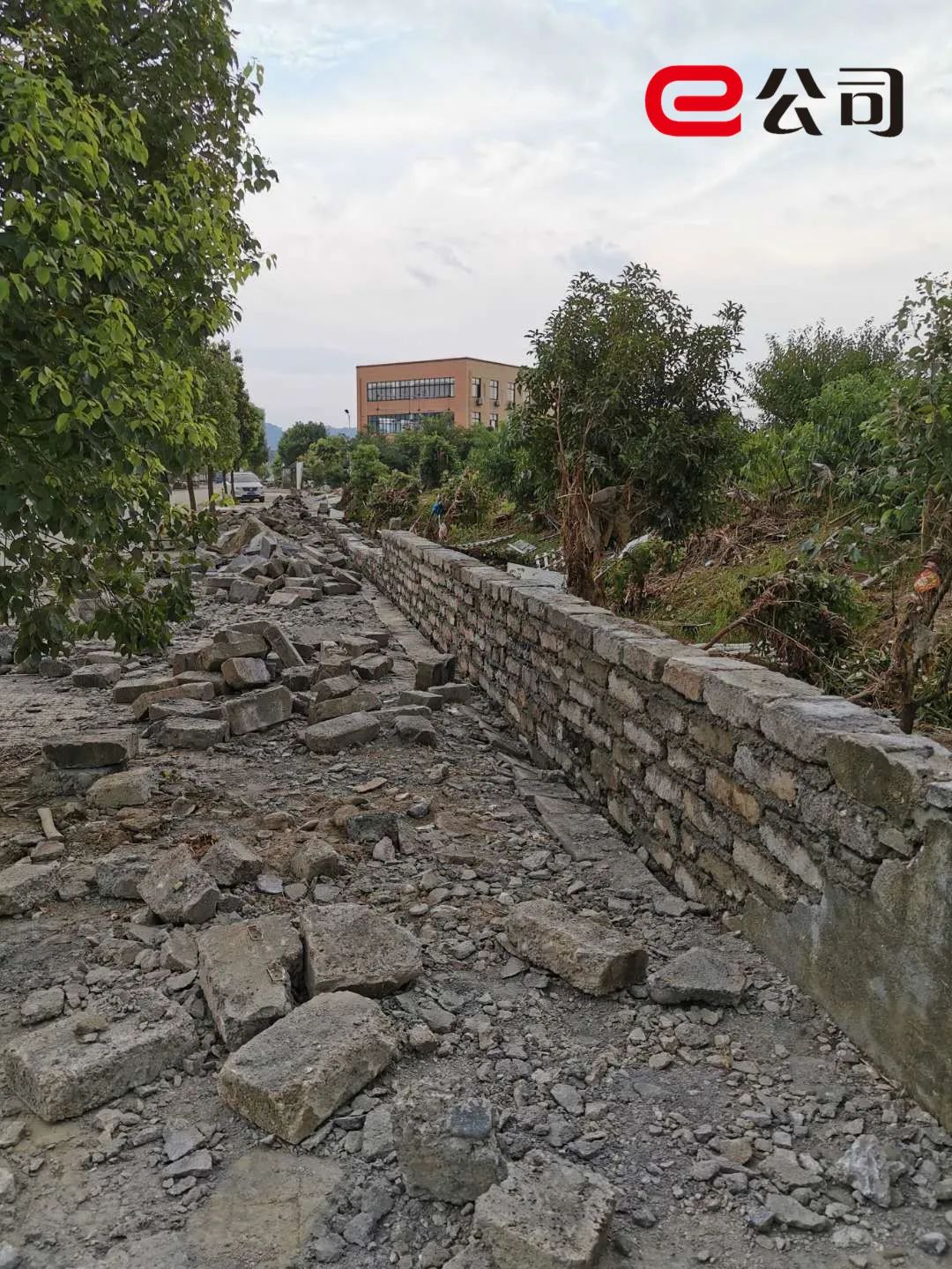 被水冲垮的围墙随处可见