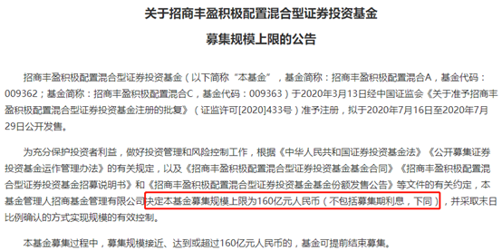 也有不少基金宣布限制规模。如招商基金就宣布,招商丰盈积极配置混合型基金拟于7月16日至7月29日公开发售,决定基金募集规模上限为160亿元人民币(不包括募集期利息,下同),并采取末日比例确认的方式实现规模的有效控制。