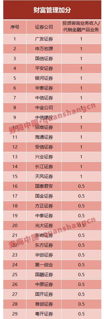新设财富管理指标:29家券商可加分,15家可加1分