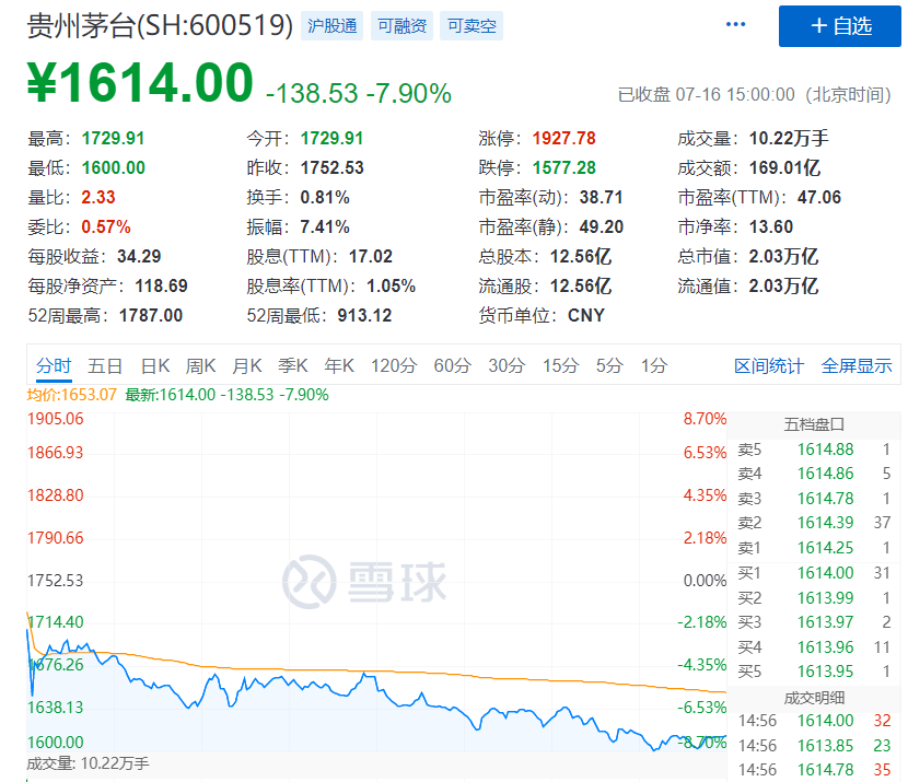 贵州茅台崩了8%