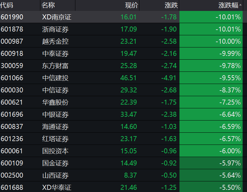 券商股尾盘大幅杀跌