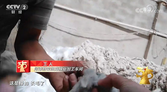 河北省高阳县是中国最大的毛巾生产基地,年产毛巾50亿条,约占全国的三分之一。在高阳县辛留佐村,记者在一家专门生产毛巾纱的企业看到,工厂生产车间有一个配料池,池子里是用来纺毛巾纱的原料,有的上面还沾染着绿色的污渍,有刺鼻的味道,里面的杂质清晰可见。负责人冯经理告诉记者,这些原料大部分是再生棉。