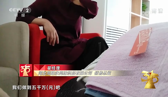 “这种不合格的毛巾,贴着符合国标的标签,通过中小超市、批发市场、电商等销往全国各地。”一位纺织品公司总经理告诉央视记者,这种达不到检测标准的毛巾,他们一年的销售额大概能卖到五千万元。