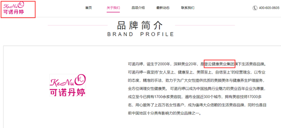 根据可诺丹婷的官网资料,可诺丹婷是登云健康美业集团旗下生活美容品牌。