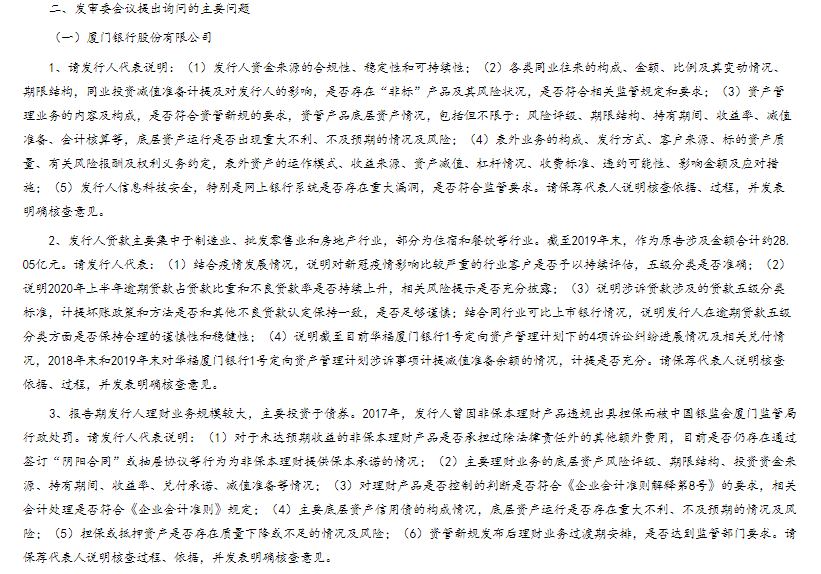 此次发审会上,发审委委员向厦门银行提出多个问题,重点包括: