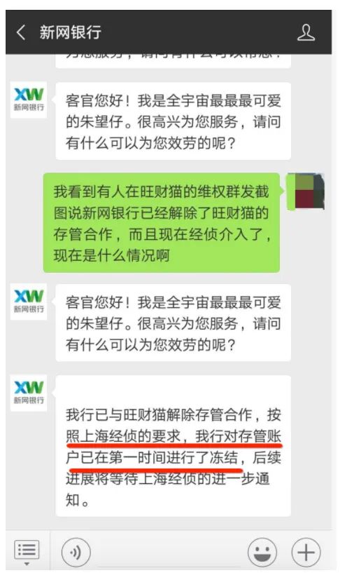 据2018年6月蓝鲸财经报道,有爆料称,盐商集团实控人吴友建失联,旗下关联互联网理财平台旺财猫及壹理财提现困难。两家平台以及盐商集团的联系电话均无人接听,旺财猫存管银行新网银行的客服表示,上海经侦介入,已应要求冻结旺财猫存管账户。