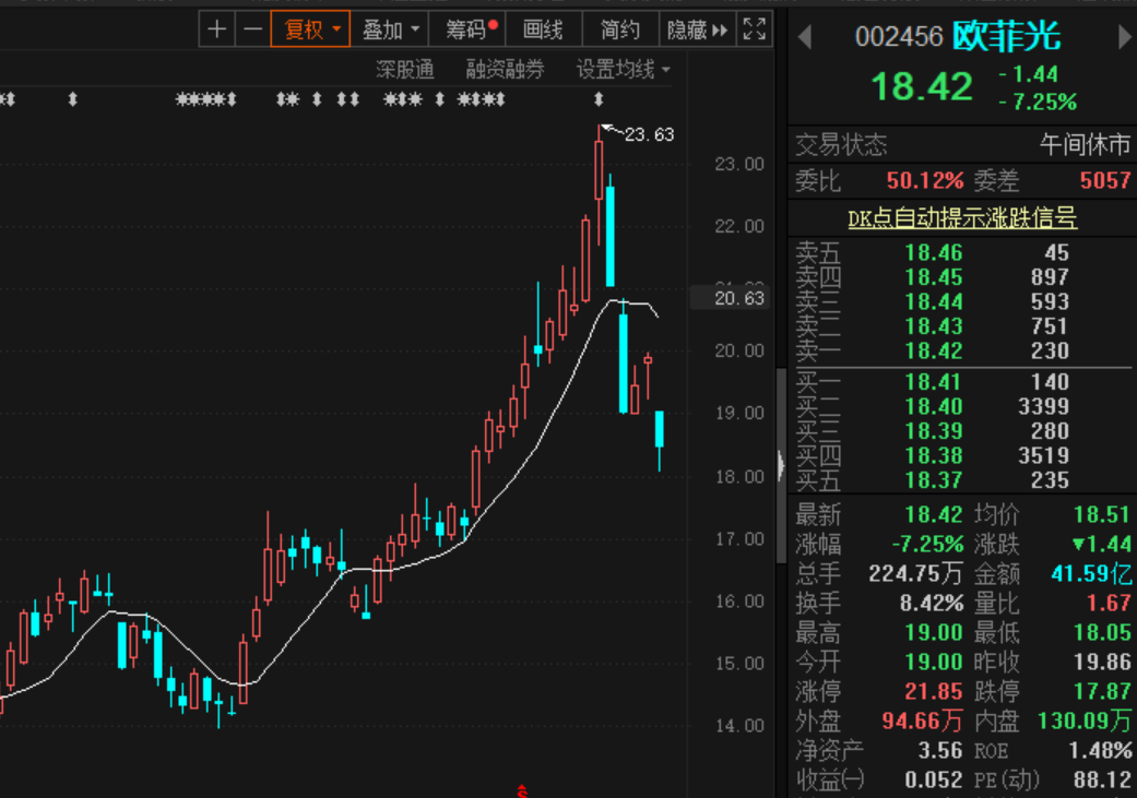 受该消息影响,欧菲光早盘一度跌逾9%。截至发稿,公司股价跌幅超过7%。