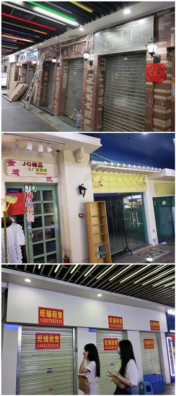 在全国闻名、深圳最大的女装批发市场,服装行业不景气之现状也依稀可见。批发市场内某栋某区域,502A、503A、505A、507A几间位置较近的店铺,均处于关门、招租状态,店铺透明玻璃门口醒目地张贴着”管理处原价出租,李生159……”、“转租,联系电话……”等招租广告。