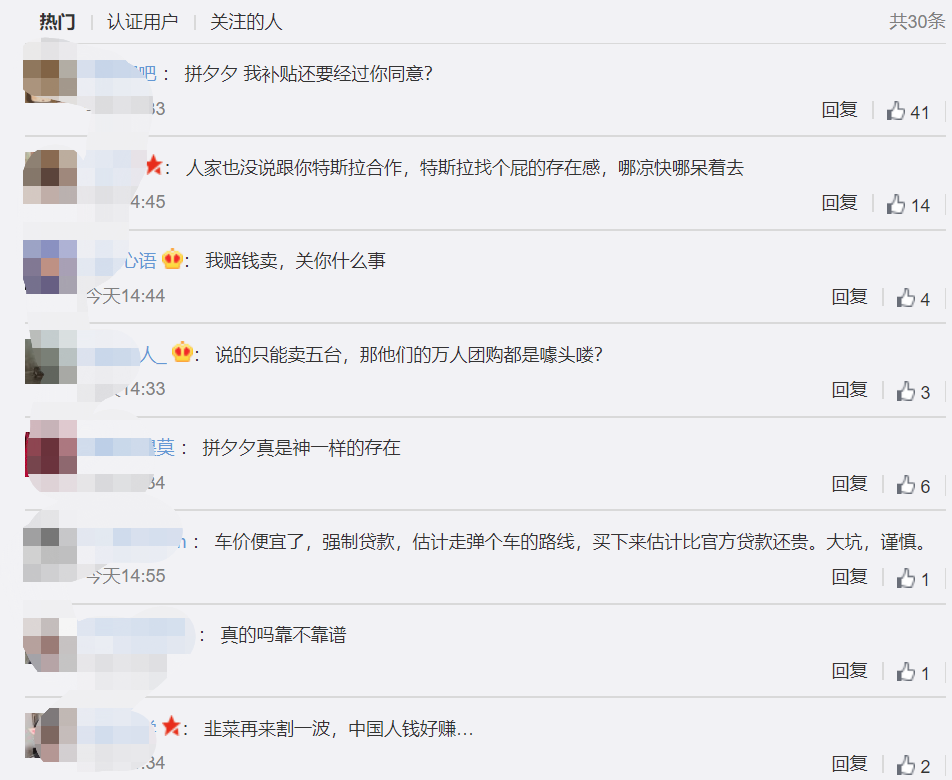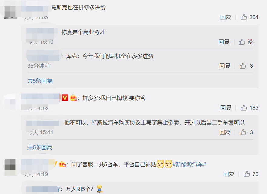 对于特斯拉的声明,网友纷纷调侃“我拼多多自掏腰包补贴还需要和你申请?”
