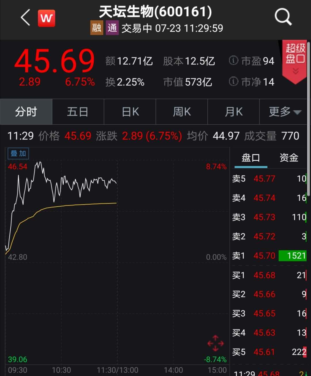 受此消息影响,国药集团中国生物旗下的天坛生物22日涨停之后,23日也一度冲击涨停。受大盘影响,截至发稿,天坛生物上涨6.75%。