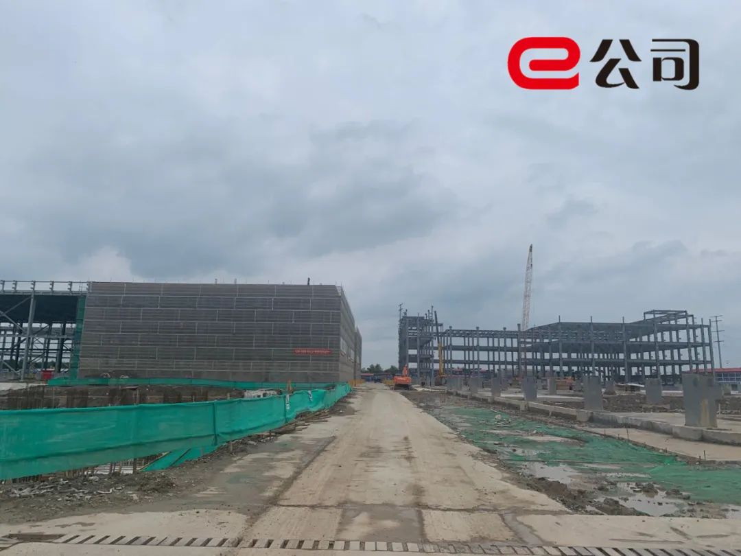 从施工情况来看,二期厂房其中一栋白色外立面已经成型,另外一栋钢结构建造已实施完成,数架起重机进行着顶棚的装吊。“二期的建设还是很快的,我们从疫情后恢复生产就没再停工,现在还剩下顶棚的装饰和一部分外墙需要施工。”现场一名施工工人告诉记者。