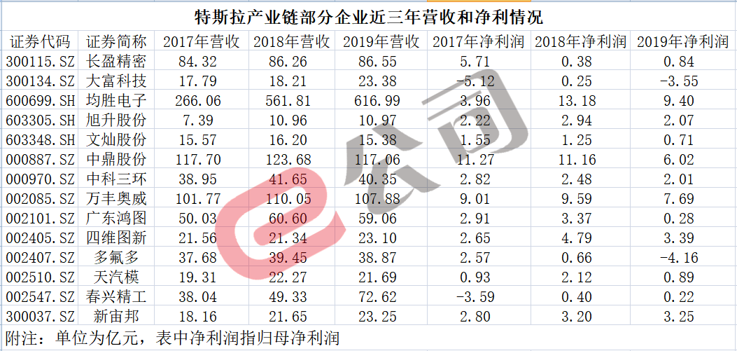 实际上,面临同样情况的特斯拉供应链企业不在少数。以为特斯拉供应铝合金车身结构件等器件的文灿股份为例,近些年向特斯拉的供应量持续增加,但却增收不增利,净利润持续下降,2017年至2019年的净利分别为1.55亿元、1.25亿元和7103万元。