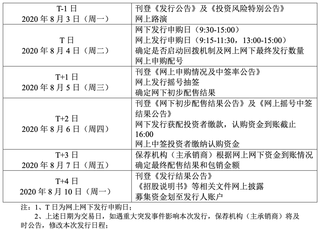 从发行时间安排来看,2家公司均在今日开始初步询价;31号确定发行价格、确定有效报价投资者及其申购股数,并于8月4日正式启动网上、网下申购。中签结果则将于8月6日公布。
