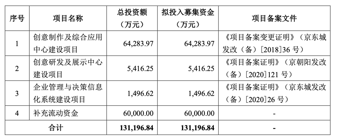 本次IPO拟募资13.12亿元,分别投入创意制作及综合应用中心建设项目、创意研发及展示中心建设项目等。