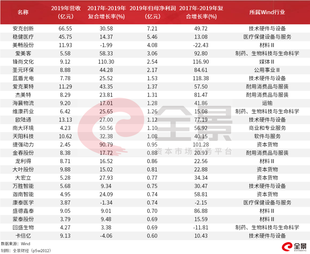 26家企业2019年平均实现营收11亿元,归母净利润均值达1.68亿元。其中,业绩体量最大的是安克创新,该公司2019年录得营收66.55亿元,归母净利润超过7亿元。