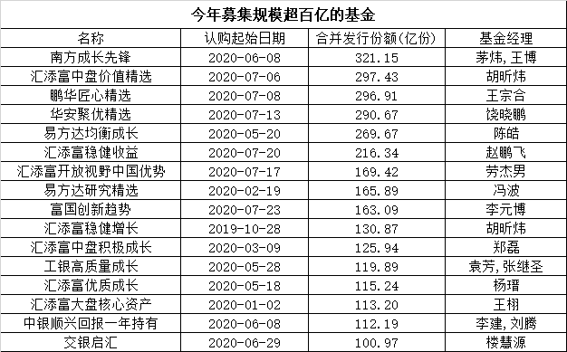 今年权益基金销售百亿级的爆款频出,比如南方成长先锋募集了321.15亿元,汇添富中盘价值精选募集了297.43亿元,鹏华匠心精选募集了296.91亿元,华安聚优精选募集了290.67亿元,易方达均衡成长募集了269.67亿元,汇添富稳健收益募集了216.34亿元。