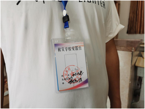 (图3:鄱阳秋实学校安置点的工作人员胸牌)