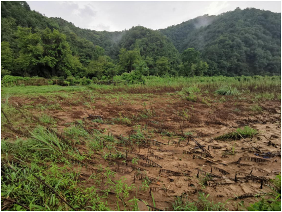 (图6:鄱阳县莲花山乡被暴雨冲袭倒伏的庄稼)