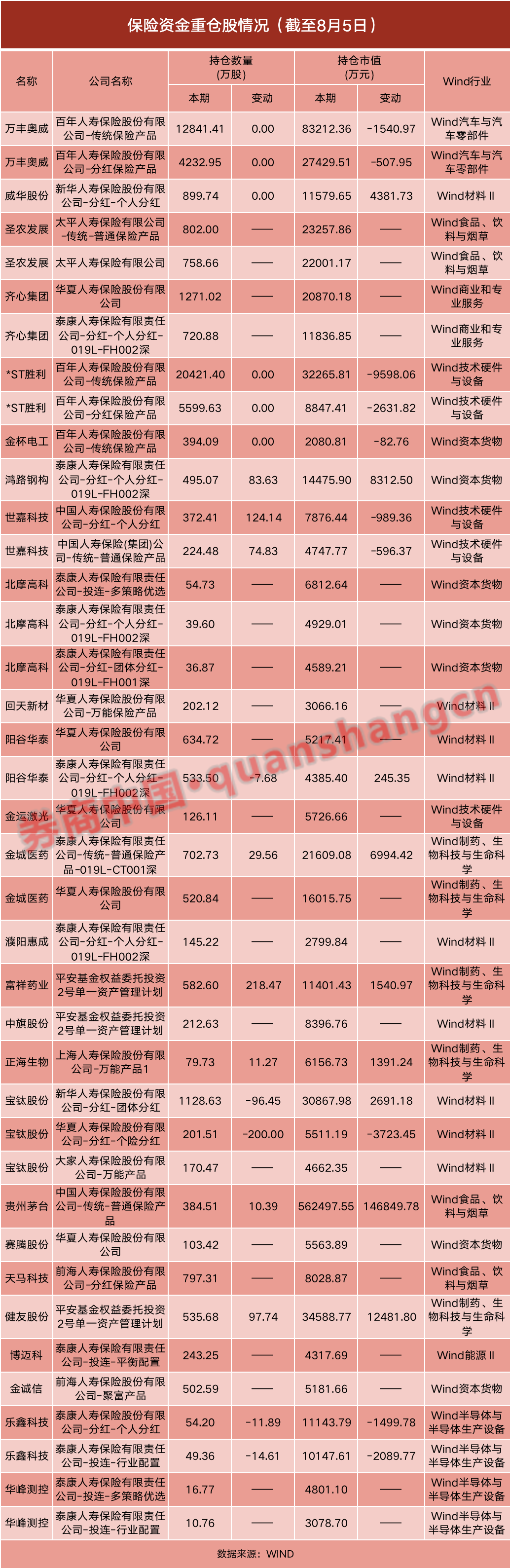 除了国寿精准加仓贵州茅台,泰康人寿二季度也大手笔加仓83.63万股鸿路钢构股票至395万股。截至二季度末,国寿持有鸿路钢构股票市值增加8312万元至1.45亿元。此外,泰康人寿还加仓了29.56万股金城医药至702.73万股,持仓市值增加6994.42万元至2.16亿元。