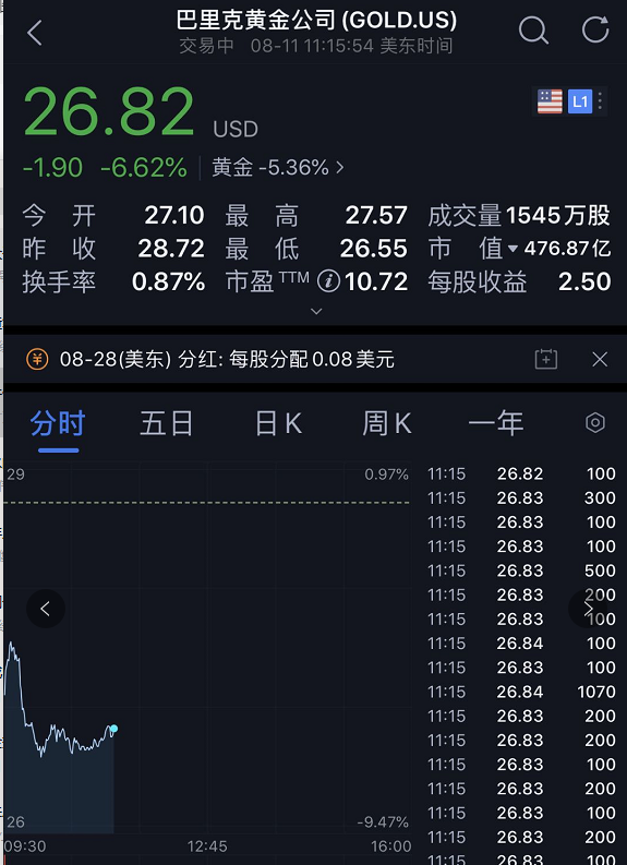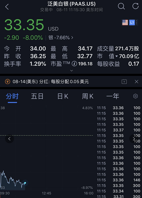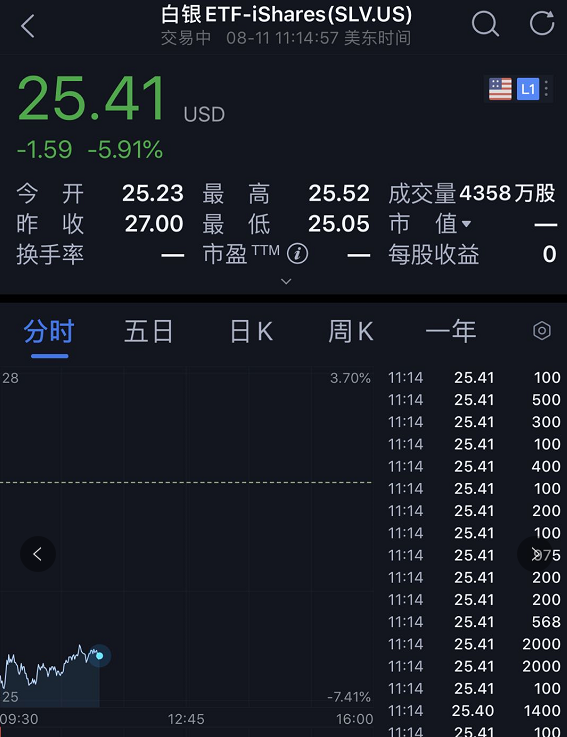 伴随着金银价格下挫,美股黄金、白银股集体下跌,白银ETF-iShares一度跌超7%,黄金ETF-SPDR一度跌超4%。泛美白银跌超7%,巴里克黄金、派拉蒙黄金跌超6%,亚马纳黄金跌近6%,纽蒙特矿业跌超5%。