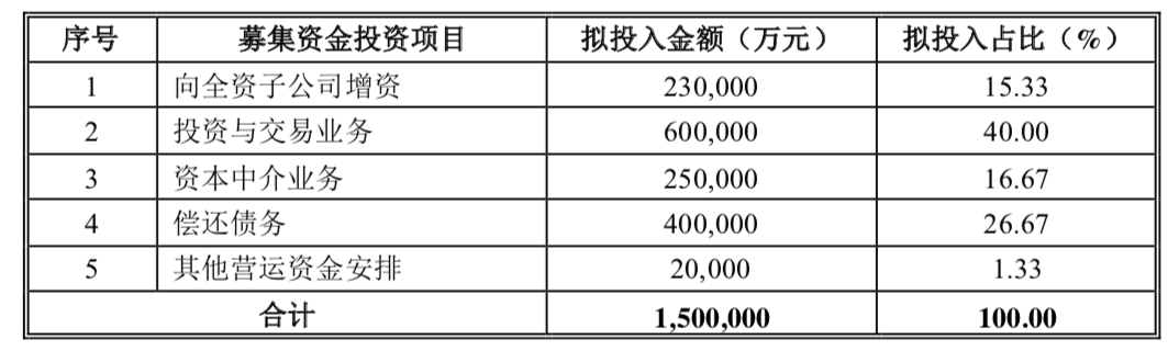 根据国信证券定增预案,150亿定增主要用于补充公司资本金、营运资金及偿还债务,以扩大业务规模,提升公司的抗风险能力和市场竞争力。