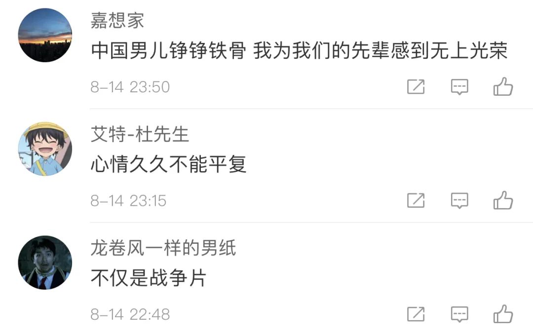 观影后,网友们泪目了,纷纷表示“八佰”不是一个数字,而是“人”,是“壮士”,更是一种民族精神。