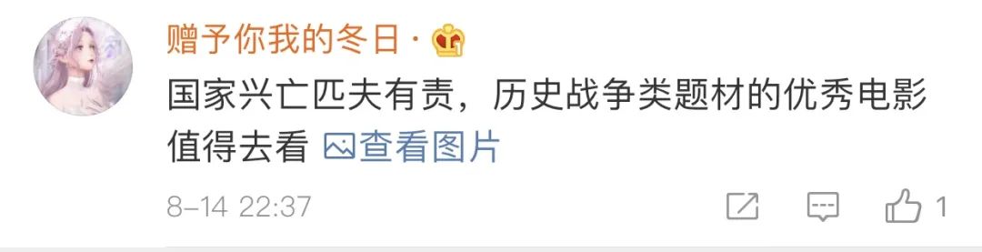 “今年第一次进影院看电影,也是第一次全程戴着口罩看电影,因为是期待已久的《八佰》!震撼到我,很精彩!绝对值得在影院看!”