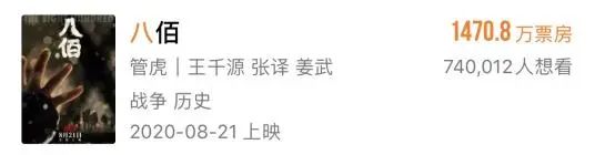8月14日,久违的电影《八佰》在全国多地开启第一轮提前点映。灯塔数据显示,截至发稿,《八佰》实时票房已超过1470.8万元。