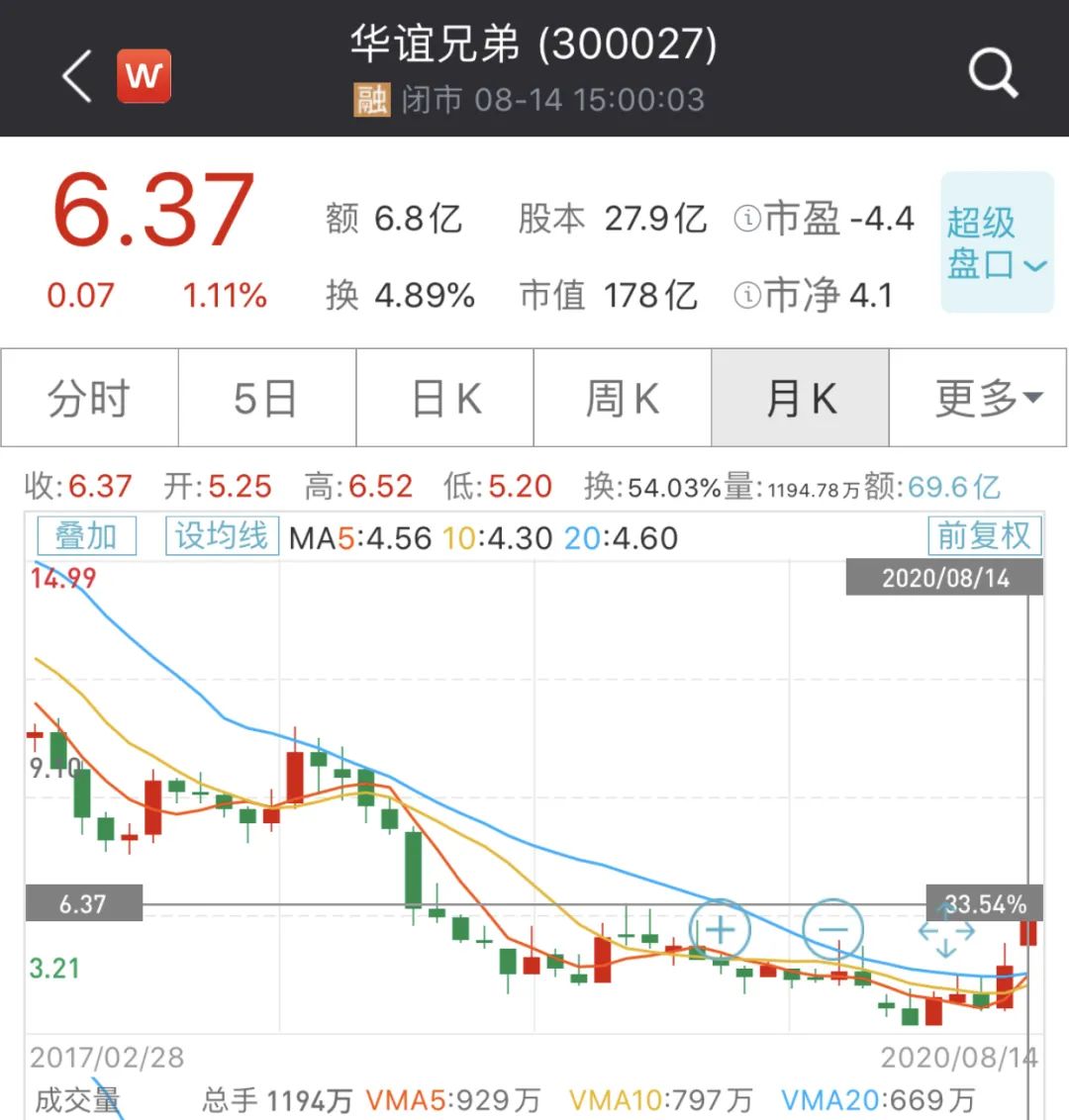 华谊兄弟的前身是王忠军和王忠磊两兄弟于1994年创立的广告公司,在收获第一桶金后,二人带领华谊兄弟转型进军影视领域。1998年华谊兄弟投资了冯小刚的《没完没了》,赚得5000万元。自此该公司逐步确立了其在影视领域的头部公司地位,并于2009年10月成功挂牌深交所创业板。2015年,华谊兄弟迎来高光时刻,创下31.91元/股的股价高点,总市值也曾逼近800亿元。