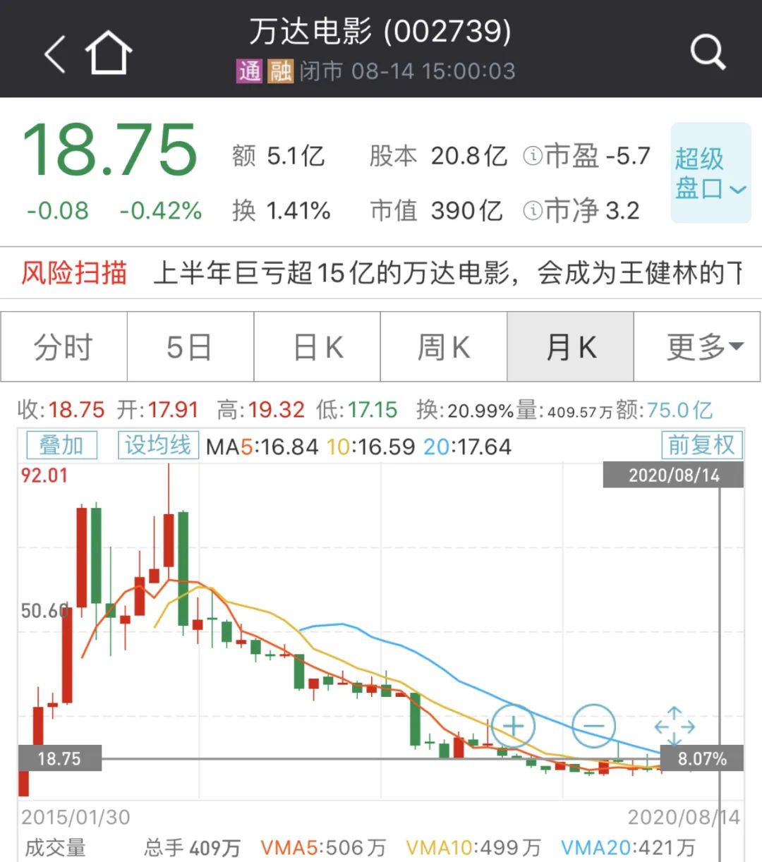 在巨亏50亿后,华谊兄弟终于靠“八百壮士”扳回一局,8月14日晚上,随着《八佰》开启第一轮点映。最新数据显示,《八佰》点映首日大卖近1500万。
