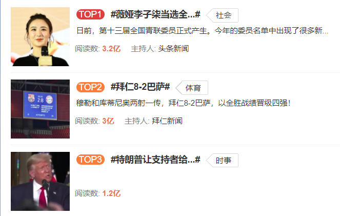8月15日晚上,#薇娅李子柒当选全国青联委员#的话题迅速冲上微博话题第一名,有超3亿的网友参与了该话题。