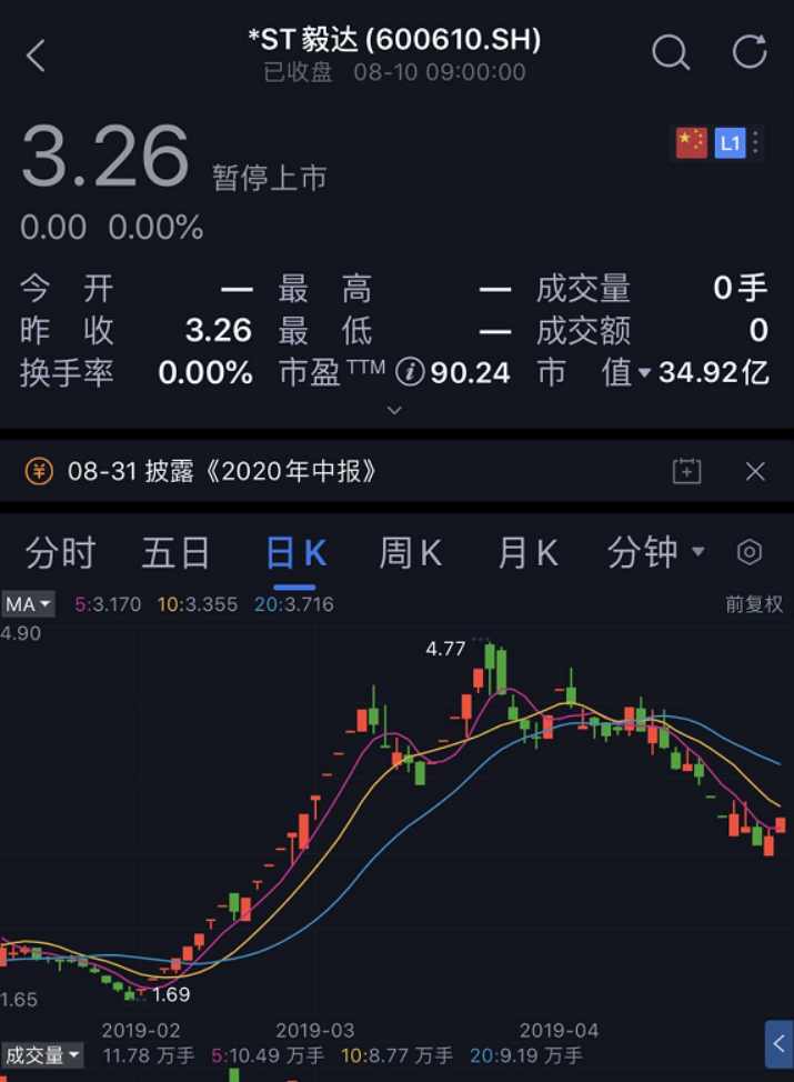 资料显示,2019年7月,*ST毅达被交易所决定暂停上市,暂停上市起始日为2019年7月19日。